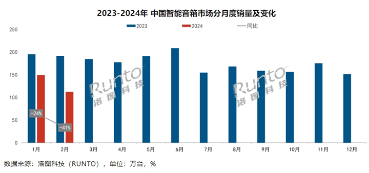 報告顯示,2024 年 1-2 月累計(jì),中國智能音箱市場銷量為 260.9 萬臺,同比下降 32.4%;銷額為 7.4 億元,同比下降 34.9%。