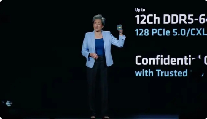 AMD是主要的CPU(中央處理器)和GPU(圖形處理器)廠商,在這兩個領域分別面對競爭對手英特爾和英偉達。在CPU方面,AMD此次推出了第五代EPYC服務器CPU,該CPU最多支持192核、384個線程,AMD還強調(diào)EPYC 9965的多項性能表現(xiàn)強于英特爾的CPU Xeon 8592+。