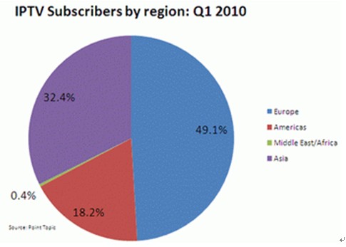 在2010年第一季度,中國(guó)電信超越了法國(guó)ISP Free,成為擁有最多IPTV用戶的供應(yīng)商。亞洲則有成為全球IPTV用戶最多地區(qū)的潛力。
