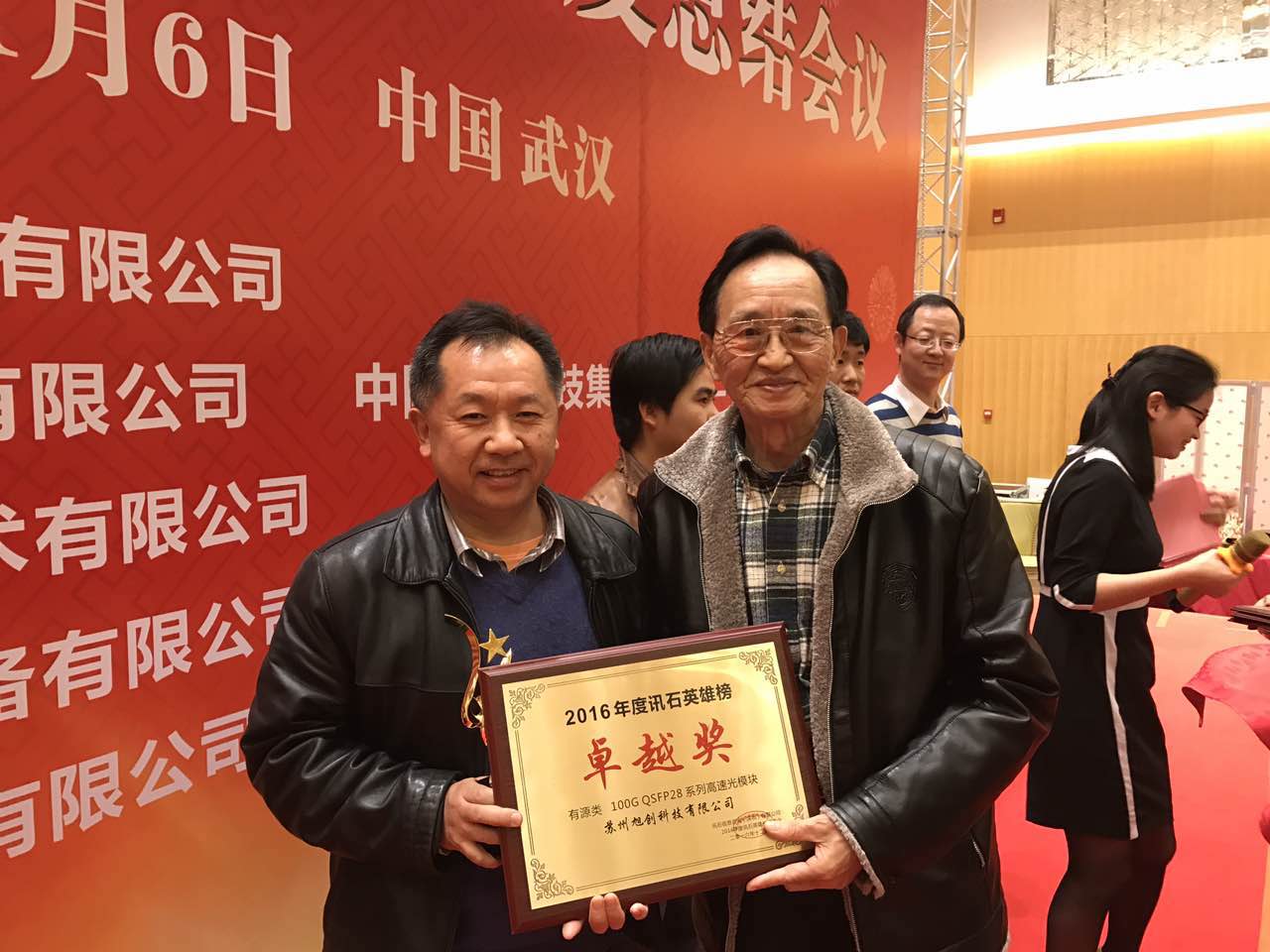 作為少數(shù)從事光通訊芯片企業(yè) 優(yōu)迅獲得卓越獎 石總與優(yōu)迅代表合影