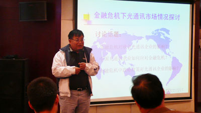 11月28日下午三點(diǎn),以“金融風(fēng)暴專題”為主要內(nèi)容的訊石十一月光通訊聯(lián)誼會(huì)如期舉行,訊石多功能會(huì)議廳匯聚了來(lái)自三十多家企業(yè)的七十多名來(lái)賓朋友,共同探討金融危機(jī)來(lái)襲下的光通訊企業(yè)發(fā)展方向。