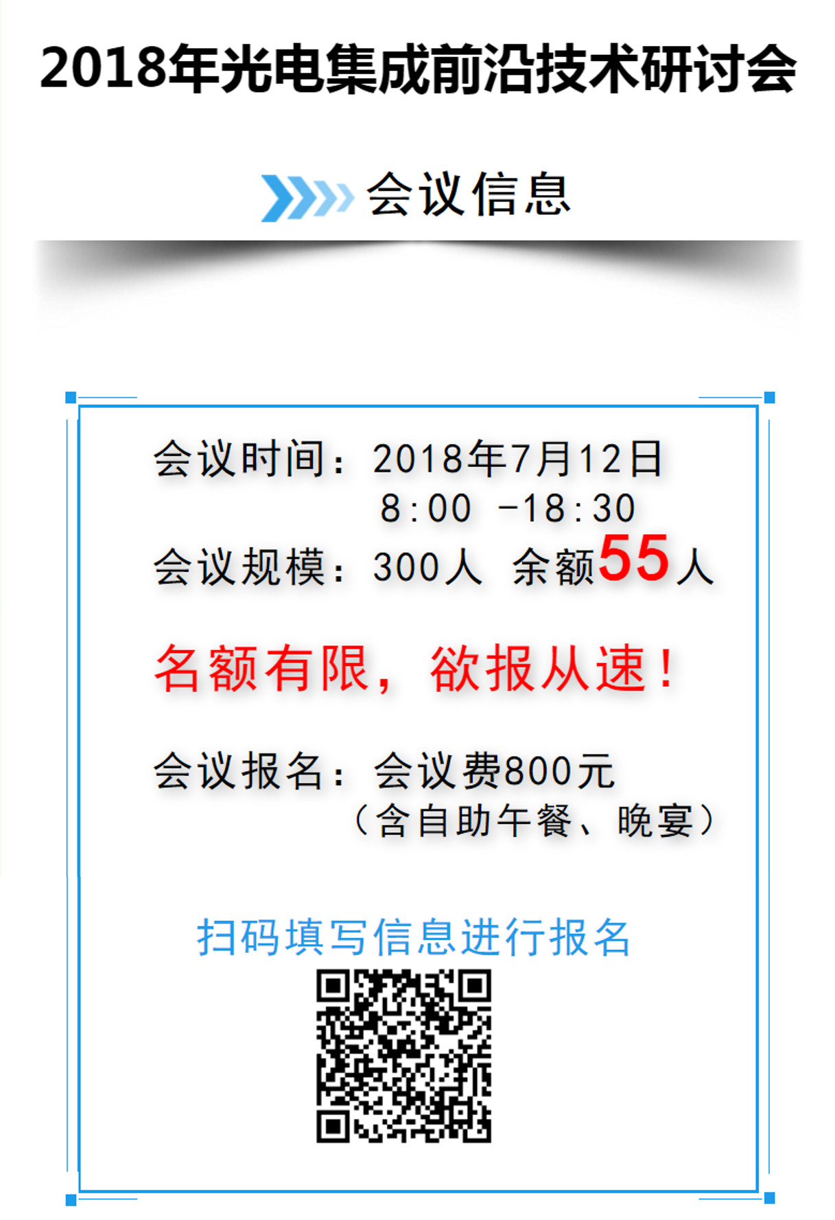 2018年光電集成前沿技術(shù)研討會即將于7月12日隆重舉行!
