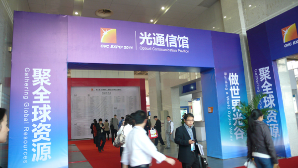還未來(lái)得及更換ECOC的噴繪宣傳,北極光電也第一次亮相在武漢光博會(huì)上