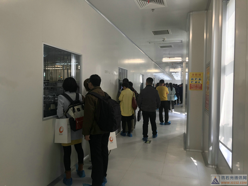 潔凈的車間,參觀者觀摩員工生產(chǎn)
