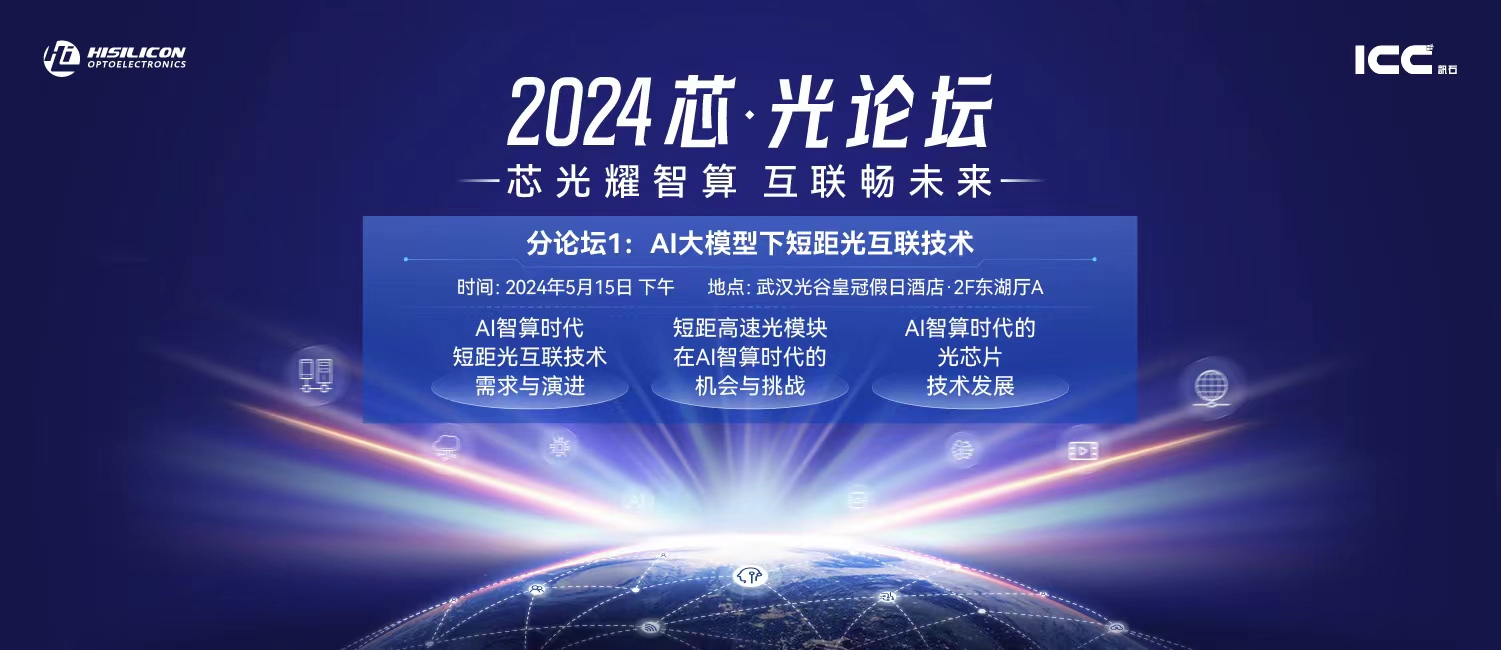 ICC訊 2024年5月14-15日,由華為海思光電主辦,ICC訊石承辦的“2024芯?光論壇:芯光耀智算 互聯(lián)暢未來”會議將在武漢光谷皇冠假日酒店舉行。