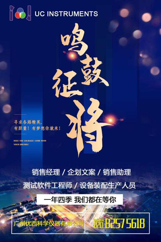基于自身發(fā)展需求,優(yōu)西儀器鳴鼓征將,尋求測試軟件工程師、銷售經(jīng)理、設備裝配生產(chǎn)人員等各路精英充實團隊,歡迎有意者聯(lián)系!