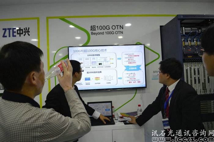 在封閉式展區(qū),展出的則以通信解決方案為主,且在閉合展區(qū)的皆為中興的專為技術(shù)人員負(fù)責(zé)講解。面向的客戶主要為運營商,以及專業(yè)性技術(shù)人員。這里主要涉及的產(chǎn)品技術(shù)有:中興一直的力推的智能eODN解決方案、下一代PON傳輸技術(shù)、VoLTE解決方案、移動回傳網(wǎng)、超100G OTN、數(shù)據(jù)中心應(yīng)用方案、5G技術(shù)、SDN\NFV網(wǎng)絡(luò)等。