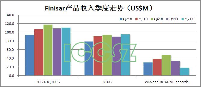 跟上個(gè)季度相比,來(lái)自LAN/SAN產(chǎn)品的收入增長(zhǎng)0.2%,來(lái)自metro/telecom產(chǎn)品(包括WSS/ROADM線路卡)的收入下滑6.7%,來(lái)自模擬和CATV應(yīng)用產(chǎn)品的收入增長(zhǎng)12.7%。