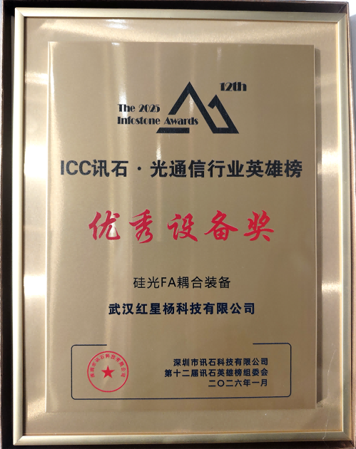ICC訊 1月16日,ICC訊石主辦的IFOC訊石光通信大會·年度論壇暨2025“訊石英雄榜”頒獎典禮在東莞隆重舉行。紅星楊科技自主研發(fā)的硅光 FA 耦合裝備,憑借一鍵式全自動光學(xué)耦合、點(diǎn)膠與固化解決方案,榮獲ICC訊石·光通信行業(yè)英雄榜“優(yōu)秀設(shè)備獎”。