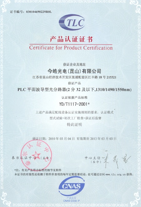 目前PLC和跳線產(chǎn)品測試設備均來自美國進口,其中PLC一次性測試32通道的設備共有2臺,價值20多萬美金。“先進的測試設備是產(chǎn)品品質(zhì)的基本保障。”林總肯定說,“目前光分路器對位車間的對位機,也都是今皓自行開發(fā)的軟件,整臺對位機還特別針對我們的制程來制訂。我們初步了解了國內(nèi)的競爭對手,應該說擁有今皓有這樣的自行開發(fā)能力的廠商屈指可數(shù)。”此外,在產(chǎn)品品質(zhì)保證方面,因為公司產(chǎn)品主要出口到歐美,公司擁有自己的RoHS 實驗室,該實驗室更通過中國合格評定國家認可委員會(CNAS)授與<實驗室認可證書>,不僅所有的產(chǎn)品都可以自己掌控 RoHS 的品質(zhì),更可在委員會的監(jiān)督下為落實環(huán)保管制。
