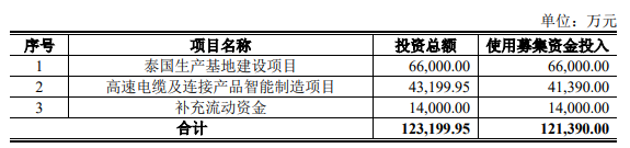 1月17日,浙江兆龍互連科技股份有限公司(簡稱“兆龍互連”或“公司”,300913)發(fā)布前次募集資金使用情況鑒證報告,向特定對象發(fā)行股票擬募集資金總額不超過121,390.00 萬元(含本數),扣除發(fā)行費用后將全部用于以下項目: