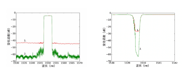 圖7:使用高SSE激光器和低SSE激光器鑒定可調(diào)諧濾波器(左)