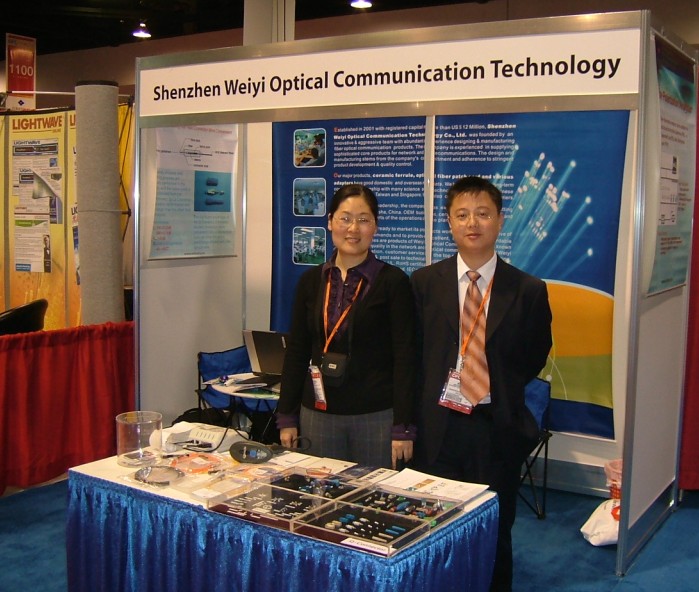 深圳威誼光通黃總在展臺前留影
