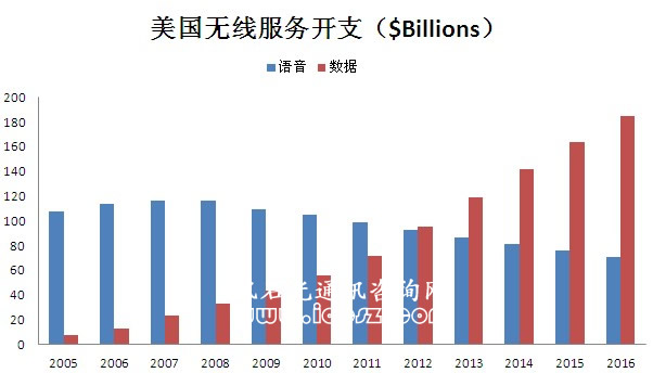 主導(dǎo)驅(qū)動器將是從主要依靠語音服務(wù)轉(zhuǎn)到主要依靠數(shù)據(jù)服務(wù)。語音和信息服務(wù)正在衰退,而無線數(shù)據(jù)開支正在擴張。2012年,無線用戶數(shù)據(jù)開支首次超過語音。