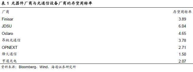 海通證券聲稱,光器件廠商的季度業(yè)績(jī)波動(dòng)其實(shí)是存貨周轉(zhuǎn)率高的表現(xiàn)。上游器件產(chǎn)業(yè)將根據(jù)下游光通信設(shè)備廠商的需求進(jìn)行生產(chǎn)供貨,從而避免跌價(jià)損失。