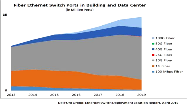 下圖1以太網(wǎng)端口趨勢(shì)的預(yù)測(cè)來(lái)自DELL,可以看到2016年100G的應(yīng)用處于急速增長(zhǎng)前的階段。