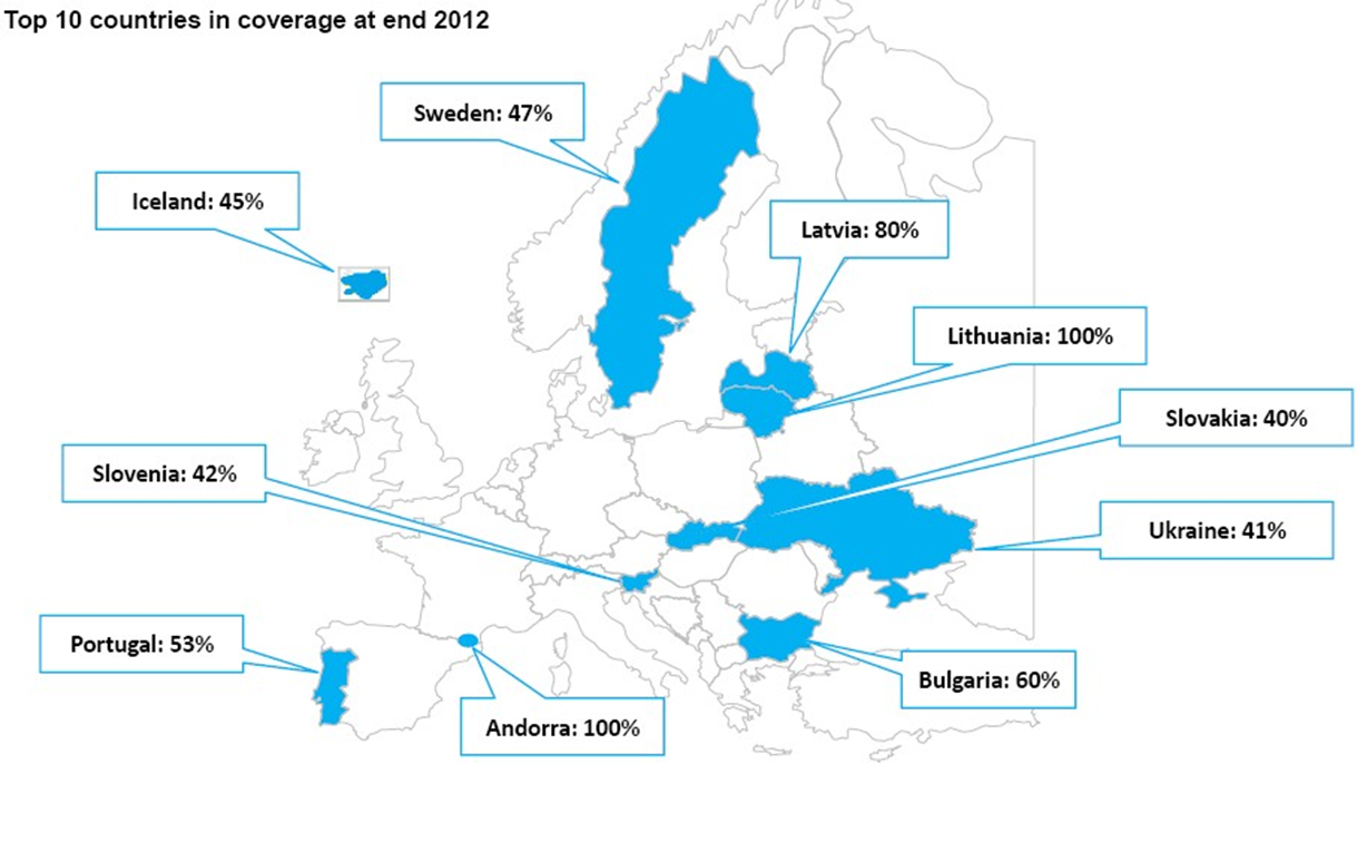 從趨勢分布市場角度來看,歐洲FTTH/B市場發(fā)展呈現(xiàn)兩極分化現(xiàn)象,且為倒兩極分化現(xiàn)象,即在FTTH/B的發(fā)展中一些傳統(tǒng)發(fā)達國家落后于發(fā)展中國家。在FTTH/B連接快速增長的國家和FTTH/B普及率較小的國家之間的差距不斷擴大,并且一些主要的歐洲市場都落入后者行列。如,預計到2017年底,俄羅斯光纖接入將達1360萬,而意大利仍將只有約75萬。并且預測到2017年底歐洲FTTH/B連接僅為4140萬,這意味著普及率只有13.3%,而且和其他區(qū)域市場相比,歐洲也處于弱勢,截至2012底亞洲/太平洋地區(qū)FTTH/B連接就已達7900萬。