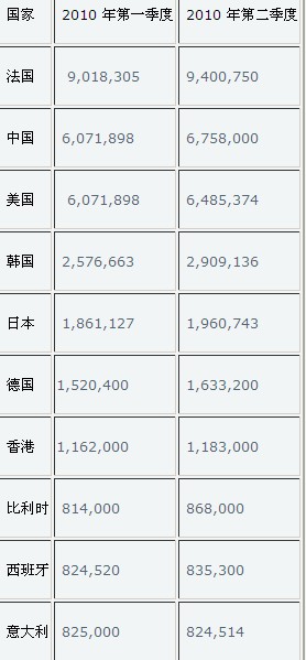 西歐多數市場較 2009 年同季度相比形勢有所好轉。報告顯示德國、英國、意大利、西班牙、荷蘭、波蘭和土耳其與其他各國相比勢頭強勁