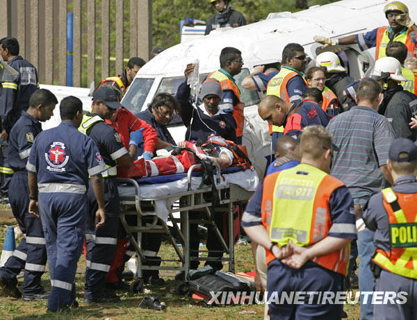 9月24日,在南非東部港市德班,救援人員正在營(yíng)救一架失事飛機(jī)上的人員。 這架載有3名機(jī)組人員的飛機(jī)在南非德班國(guó)際機(jī)場(chǎng)起飛后不久即在一所學(xué)校墜毀。新華社/路透