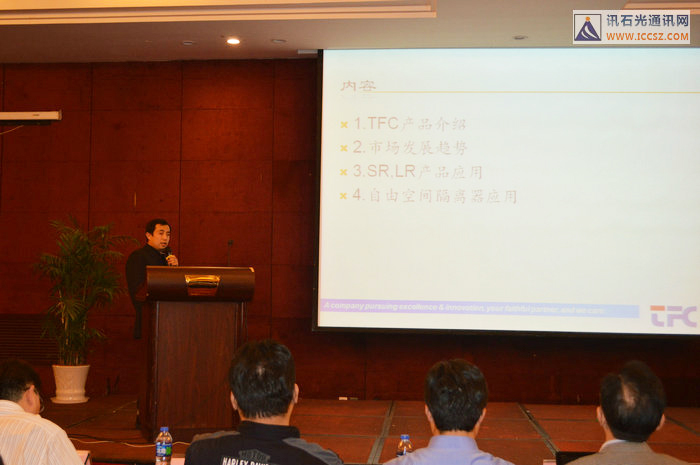 接著蘇州天孚光電事業(yè)部總經(jīng)理張鐵軍發(fā)表了題為《新型光隔離器組件》演講,介紹了40/100G單模和多模模塊需求走勢等內(nèi)容,非常值得學(xué)習(xí)。