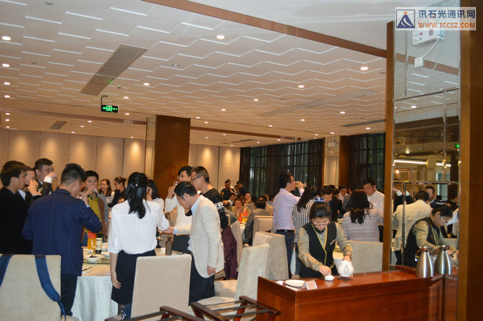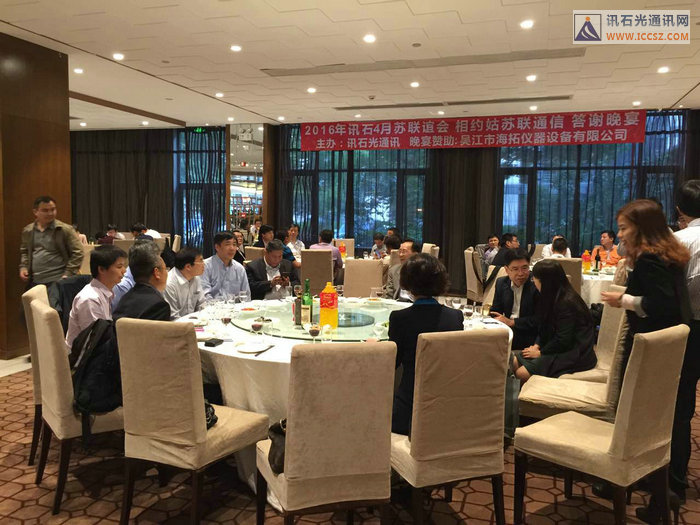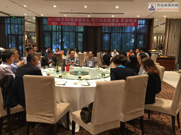 熱烈的討論環(huán)節(jié)過后,訊石4月會議也圓滿結(jié)束了,大家一同前往餐廳參加晚宴,晚宴現(xiàn)場氣氛活躍,其樂融融。在此訊石感謝各位嘉賓百忙之中前來參加會議,也祝愿通信業(yè)也如4月的蘇州,充滿生機(jī)與朝氣。再次感謝蘇州旭創(chuàng)科技有限公司、科納技術(shù)(蘇州)有限公司、蘇州天孚光通信股份有限公司、東捷光電科技(蘇州)有限公司、蘇州山河宇通光電科技有限公司、吳江海拓儀器設(shè)備有限公司和中信銀行蘇州工業(yè)園支行對本次會議的大力支持!最后,訊石再一次對大家的到來表示衷心的感謝,也祝愿各光通訊行業(yè)同仁們都發(fā)展的越來越好。