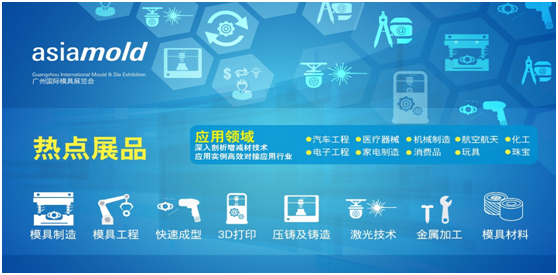 Iccsz訊 第十二屆廣州國際模具展覽會(Asiamold)將于2018年3月4至6日于廣州中國進(jìn)出口商品交易會展館A區(qū)隆重舉行。展會將再度與SIAF廣州國際工業(yè)自動(dòng)化技術(shù)及裝備展覽會同期亮相,展品種類從模具、3D打印、金屬加工、壓鑄鍛壓技術(shù)、激光制造,涵蓋至生產(chǎn)自動(dòng)化產(chǎn)業(yè)鏈。兩展協(xié)力同期舉辦,將構(gòu)建促成更大協(xié)同效應(yīng)的合作平臺,協(xié)助業(yè)內(nèi)人士開拓商機(jī)。