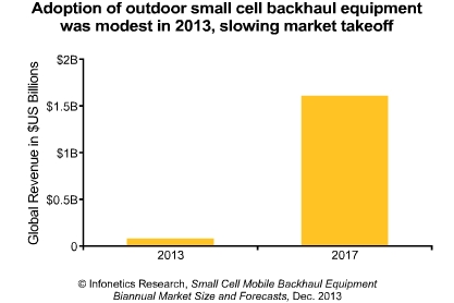 Infonetics微波和載波無線網(wǎng)分析師Richard Webb稱:“雖然Infonetics從未看好戶外Small Cell的部署速度,然而從2013年相對溫和的部署來看,我們現(xiàn)在預測戶外Small Cell達到大規(guī)模部署,要比之前預測的要晚些,仍需兩年左右的時間。而這將直接對Small Cell回程市場產(chǎn)生影響。”