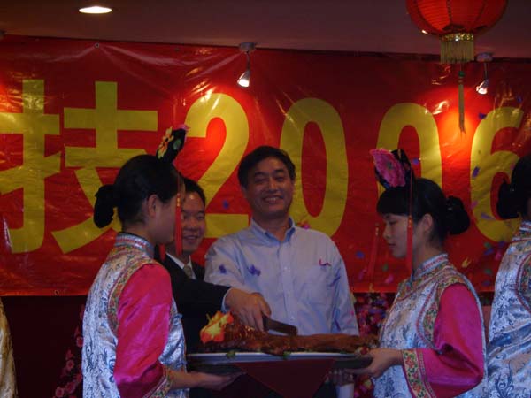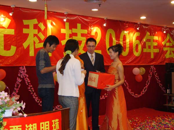 2007年2月9日離舊歷新年不到十天的日子里,朗光科技在西湖明珠酒店舉辦了2006年會(huì)。辭舊迎新之際,朗光300多員工都在此聚會(huì)。大紅燈籠高高掛,四處彩球飄飛,整個(gè)大堂喜氣洋洋。每個(gè)朗光人都心花怒放,因?yàn)榻裢硎菍儆诶使馊俗约旱木蹠?huì),會(huì)上不光有自己排練表演的節(jié)目,更有領(lǐng)導(dǎo)表彰員工的環(huán)節(jié)。一年里的忙碌,一年的成就與輝煌,在這次盛大的聚會(huì)上,大家都把它寫在臉上,斟在酒杯中。朗光科技是訊石的會(huì)員,訊石也作為了特邀嘉賓參加了朗光的年會(huì),共同分享朗光人的喜悅。