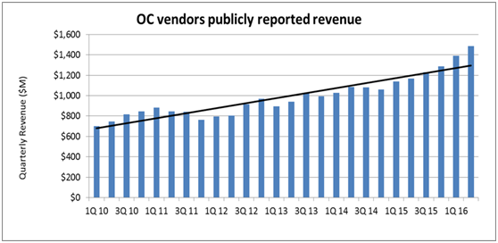 Iccsz訊(編譯:Aiur) 領(lǐng)先的光器件供應(yīng)商們Q216營(yíng)收首次突破了14億美元,同比Q215增長(zhǎng)了27%。LightCounting稱,主要的19家供應(yīng)商中有9家創(chuàng)下了營(yíng)收新記錄。根據(jù)分析,中國(guó)100G快速發(fā)展,北美ROADM建設(shè)以及超大規(guī)模數(shù)據(jù)中心的擴(kuò)張共同推動(dòng)了光器件需求增長(zhǎng)。