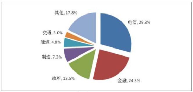 在數(shù)據(jù)中心市場構成中,2010 年電信、金融、政府、制造行業(yè)的投資分別占全國數(shù)據(jù)中心總投資的 29.3%、24.3%、13.5%、7.3%的市場份額,合計達 74.4%,在數(shù)據(jù)中心市場中占據(jù)了三分之二以上的市場份額。電信、金融行業(yè)是國內(nèi)數(shù)據(jù)中心市場份額最大的兩個行業(yè),已經(jīng)基本建立了設備較為齊全的數(shù)據(jù)中心,開始進入了高度依賴信息系統(tǒng)來支撐關鍵業(yè)務流程的信息化時代,其數(shù)據(jù)中心存在持續(xù)的擴容需求。電信、金融客戶等大型企業(yè)數(shù)據(jù)中心的持續(xù)更新、擴容給數(shù)據(jù)中心的市場帶來更多的增長空間。