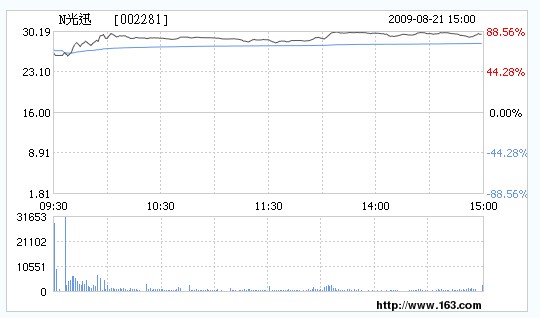 【光通訊咨詢網(wǎng)】國(guó)內(nèi)通信光電子器件制造的龍頭企業(yè)武漢光迅科技股份有限公司(簡(jiǎn)稱"光迅科技")股票上市掛牌儀式今日在深圳證券交易大廳隆重舉辦。光迅科技發(fā)行價(jià)格16元/股,發(fā)行數(shù)量4000萬股,今日上市3200萬股,發(fā)行市盈率35.4倍。今日股票開盤價(jià)27元,收于29.79元,換手率84.86%,全日漲86.19%。公司的主要產(chǎn)品包括光纖放大器、波分復(fù)用器、光集成器件等。