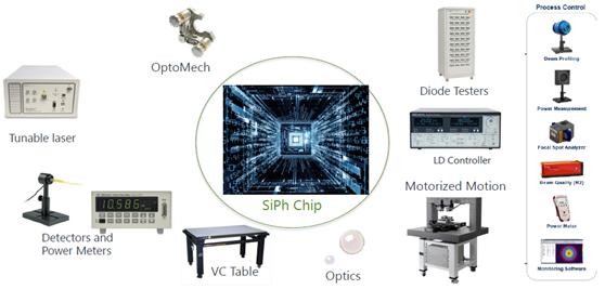 除了上述產(chǎn)品應(yīng)用,Newport還致力于將光電知識(shí)應(yīng)用于光通訊的前沿技術(shù)熱點(diǎn),例如硅光子學(xué)、Co-packget、400G/800G光模塊等。Newport提供可調(diào)諧激光器、光學(xué)鏡架、光芯片老化測(cè)試設(shè)備、精密運(yùn)動(dòng)控制、光功率和光斑測(cè)試、光學(xué)隔振、高速率光探測(cè)器等高性能產(chǎn)品可以幫助客戶解決研發(fā)過程中的各種挑戰(zhàn),提高研發(fā)效率。