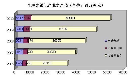 全球光通訊產(chǎn)業(yè)產(chǎn)值: