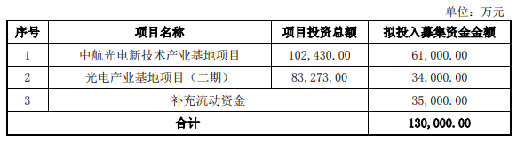 公告指出,“中航光電新技術(shù)產(chǎn)業(yè)基地項目”總投資10.24億元,包含募集資金6.1億元,“光電產(chǎn)業(yè)基地項目(二期)”總投資8.33億元,包含募集資金3.4億元。