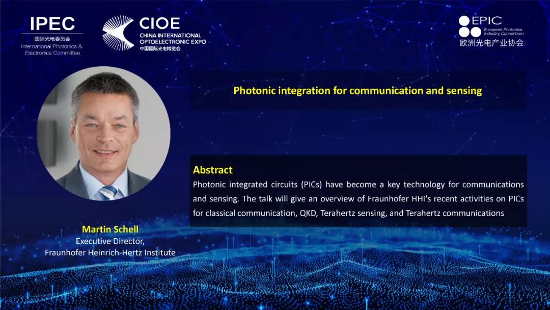 來自德國HHI實驗室的Martin Schell教授分享了PICs(PhotonicIntegrated Circuits)在光通信以及傳感領(lǐng)域的最新研究進展。Schell教授指出未來高波特率通訊場景,PIC具有架構(gòu)簡單、功耗更低的優(yōu)勢,同時未來在LiDAR和光計算以及量子通信等領(lǐng)域會有廣闊的發(fā)展。