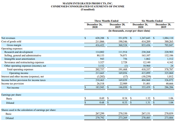 ICC訊(編譯:Nina)近日,Maxim Integrated Products, Inc.(納斯達(dá)克:MXIM)公布了其截至2020年12月26日的2021財(cái)年第二季度財(cái)務(wù)業(yè)績(jī)。