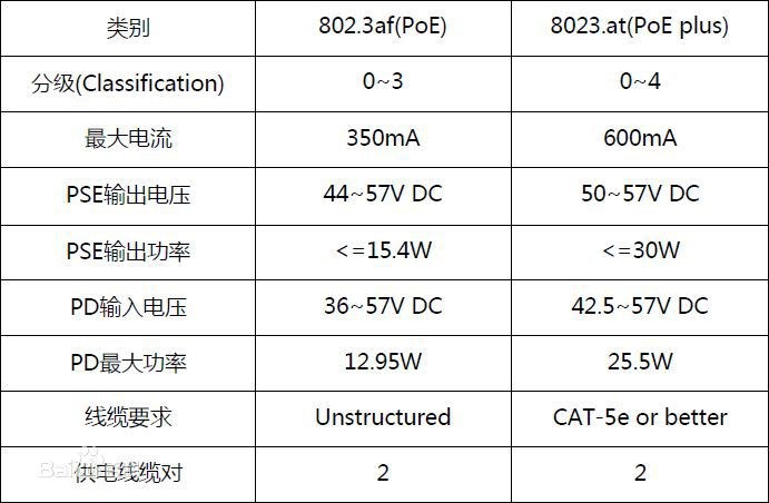 IEEE 802.3af和IEEE 802.3at標(biāo)準(zhǔn)的區(qū)別: