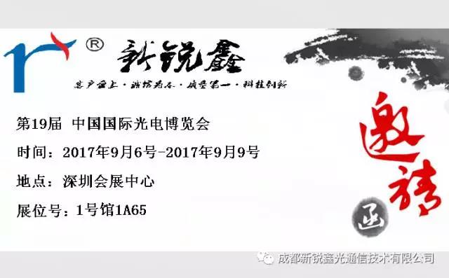 第19屆中國國際光電博覽會(huì)(CIOE2017),新銳鑫光通信誠邀行業(yè)朋友、新老客戶蒞臨我司展位(展位號(hào):1號(hào)館1A65)暢談行業(yè),共謀發(fā)展。