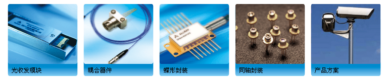 奧雷光電的光通信器件具有從器件的封裝,到光纖耦合組件,到光電轉(zhuǎn)換模塊的縱向集成的技術(shù)和開(kāi)發(fā)能力,同時(shí)基于光傳輸技術(shù),不斷開(kāi)發(fā)新的光電傳輸器件,以及光傳輸模塊和子系統(tǒng),提供光傳輸?shù)脑鲋捣?wù),為客戶(hù)提供最有效的方式達(dá)到高帶寬的傳輸目的。奧雷產(chǎn)品廣泛應(yīng)用于及光通信,無(wú)線(xiàn)3G直放站通信,各類(lèi)監(jiān)控視頻傳輸,以及工業(yè)以太網(wǎng)控制等領(lǐng)域。奧雷光電具有以下產(chǎn)品: