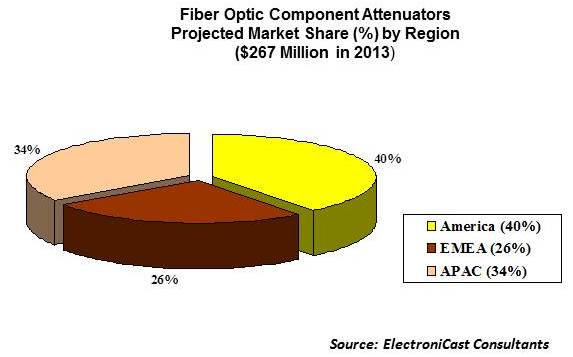 根據(jù)ElectroniCast,電控可變光衰減器(EVOAs)可以提供快速調(diào)諧速度和不間斷調(diào)整,以及內(nèi)嵌調(diào)整,將成為市場(chǎng)中越來越重要的組成部分。預(yù)計(jì)到2014年EVOAs市場(chǎng)將達(dá)1.95億美元。