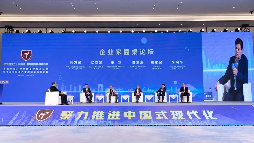 隨后舉行的江蘇省民營經(jīng)濟(jì)高質(zhì)量發(fā)展論壇暨全省民營經(jīng)濟(jì)人士理想信念報告會上,與會專家學(xué)者、企業(yè)家代表圍繞“學(xué)習(xí)貫徹二十大精神、做強(qiáng)國有我的新蘇商”主題展開對話互動,共謀創(chuàng)新之策,共襄發(fā)展盛舉。