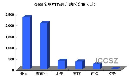 Q109末全球FTTx接入用戶達(dá)到5340萬(wàn) 80%集中在亞洲市場(chǎng)