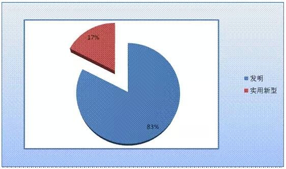 我國可見光通信專利申請數(shù)量達(dá)到387項,專利申請開始于2000年以后,并且在2008年后開始快速增長。從專利申請類型上來看,如圖4所示,我國可見光通信領(lǐng)域的專利申請以發(fā)明和實用新型專利為主,其中發(fā)明專利所占的比重達(dá)到83%,實用新型專利所占的比重為17%,沒有外觀設(shè)計專利。這說明我國可見光通信領(lǐng)域的專利質(zhì)量較高,基礎(chǔ)創(chuàng)新能力比較強(qiáng)。缺乏外觀設(shè)計專利則表明,可見光通信領(lǐng)域,現(xiàn)在商業(yè)化和產(chǎn)業(yè)化的程度比較低,周邊產(chǎn)品還未開發(fā)。