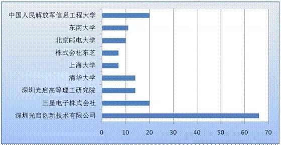 除此之外,我國專利申請數(shù)目較多的申請人,均為高校和研究機(jī)構(gòu);信息工程大學(xué)、清華大學(xué)、東南大學(xué)、北京郵電大學(xué)等,均在可見光通信領(lǐng)域有少量的布局,也有來自各大高校的實驗室的獨立申請;另外復(fù)旦大學(xué)、上海交通大學(xué)等,在傳統(tǒng)光通信研發(fā)的基礎(chǔ)上,可見光通信的研究也取得了一定的成果。