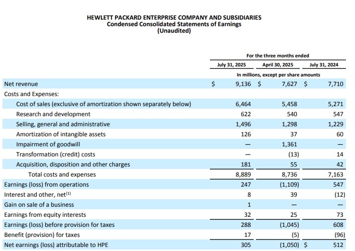 ICC訊 HPE公布截至2025年7月31日的2025財年第三季度財務業(yè)績。