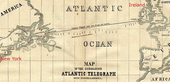 世界上第一條跨洲的海底通訊電纜將于1858年,從愛爾蘭到紐芬蘭,這是第一條連接英格蘭和加拿大的電信通訊系統(tǒng)。