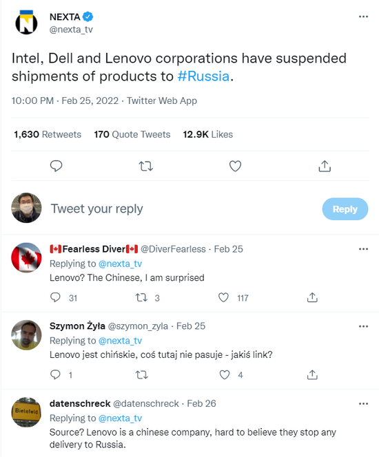 國(guó)外網(wǎng)友對(duì)聯(lián)想?yún)⑴c美國(guó)制裁感到驚訝