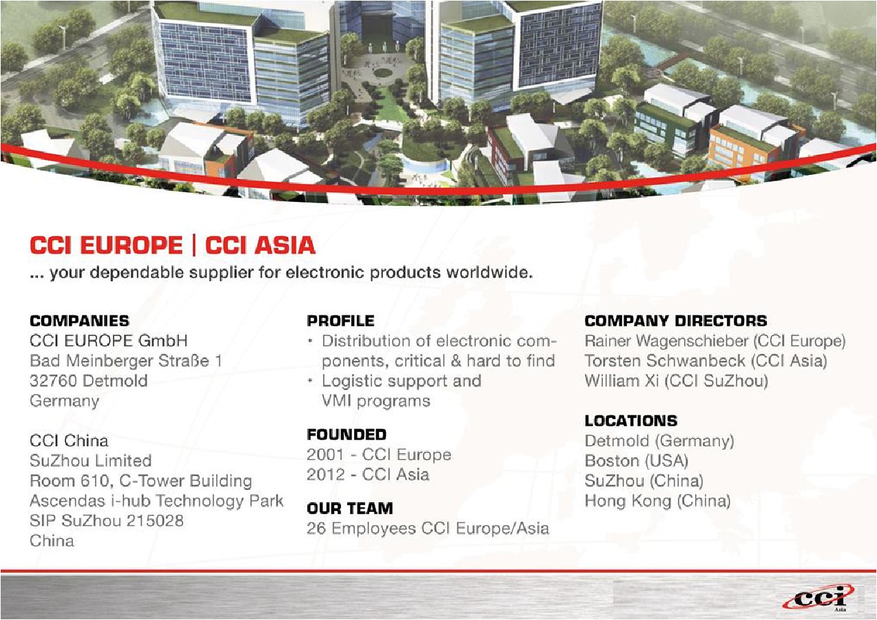ICCSZ訊 歡迎蘇州欣美盛貿(mào)易有限公司加入訊石會員,Commodity Components international Suzhou Ltd,簡稱CCI,蘇州欣美盛貿(mào)易有限公司。