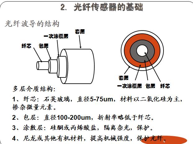 光纖傳感器始于1977年,目前已進(jìn)入研究與應(yīng)用并重階段。主要優(yōu)點(diǎn):靈敏度高、電絕緣性能好、抗電磁干擾、可撓性強(qiáng)、可實(shí)現(xiàn)不帶電的全光型探頭。頻帶寬、動(dòng)態(tài)范圍大??捎煤芟嘟募夹g(shù)基礎(chǔ)構(gòu)成傳感不同物理量的傳感器便于與計(jì)算機(jī)和光纖傳輸系統(tǒng)相連,易于實(shí)現(xiàn)系統(tǒng)的遙測(cè)和控制可用高溫、高壓、強(qiáng)電磁干擾、腐蝕等惡劣環(huán)境。結(jié)構(gòu)簡(jiǎn)單、體積小、重量輕、耗能少。