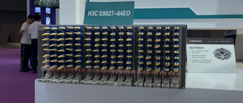 H3C S9827-64EO CPO交換機在CIOE 2024上的實機上電展示